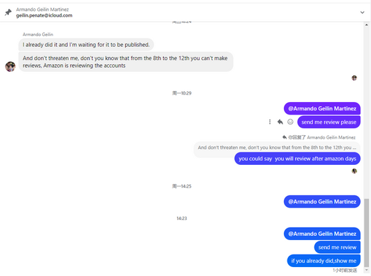 国家:美国 姓名:Armando Geilin Martinez 邮箱:geilin.penate@icloud.com Facebook主页:https://www.facebook.com/armando.geilin.martinez# 曝光原因和证据等: 不回评 态度恶劣 支持曝光() 被冤枉了()